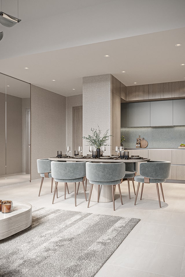 This exclusive enclave unveils a limited collection of 52 designer units, comprising 1, 2, and 3-bedroom apartments, complemented by just four townhouses, culminating in an intimate, private community that celebrates refined island living.
