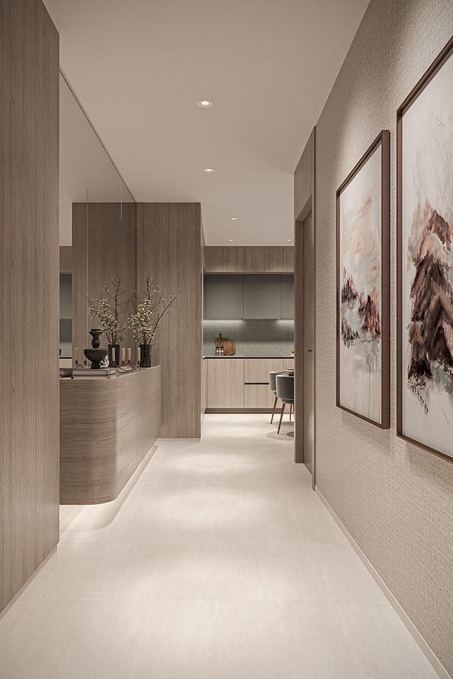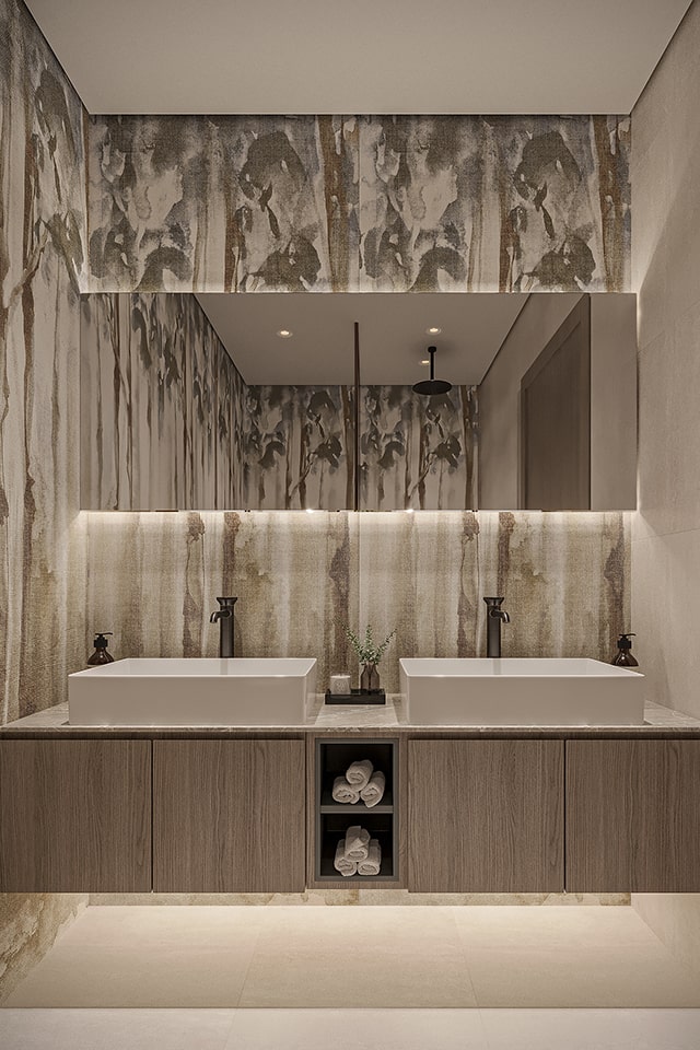 Each residence is a testament to sophisticated coastal artistry. Every detail reflects a dialogue between nature and design, from fully clad walls in rich, textured wood finishes that evoke the warmth of a yacht deck, to porcelain accents that mirror the cool, clean wash of the tides.