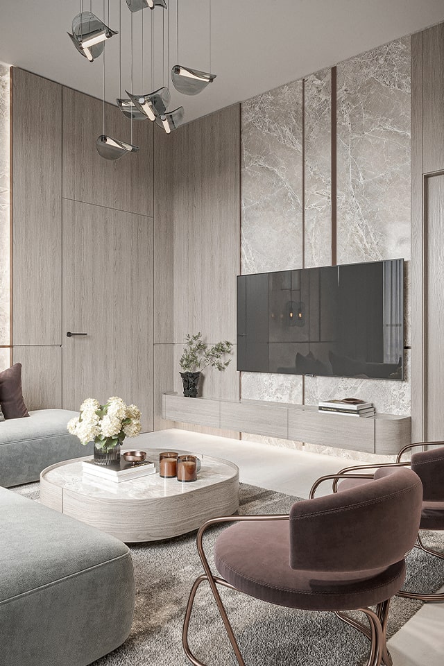 Each residence is a testament to sophisticated coastal artistry. Every detail reflects a dialogue between nature and design, from fully clad walls in rich, textured wood finishes that evoke the warmth of a yacht deck, to porcelain accents that mirror the cool, clean wash of the tides.